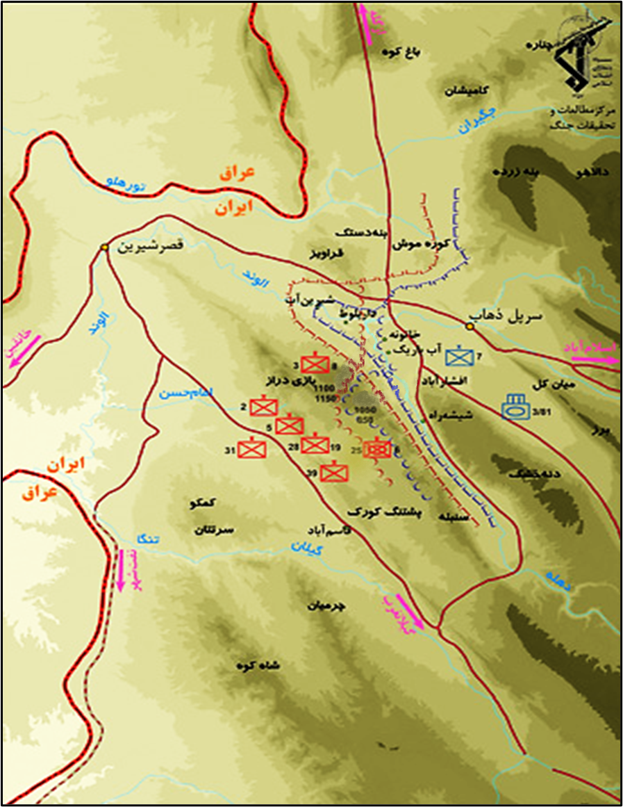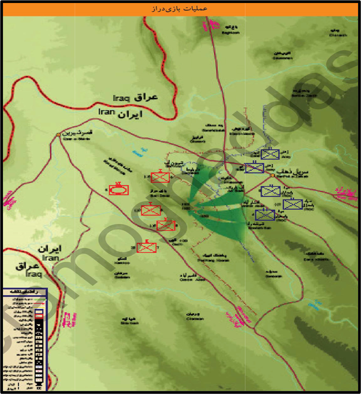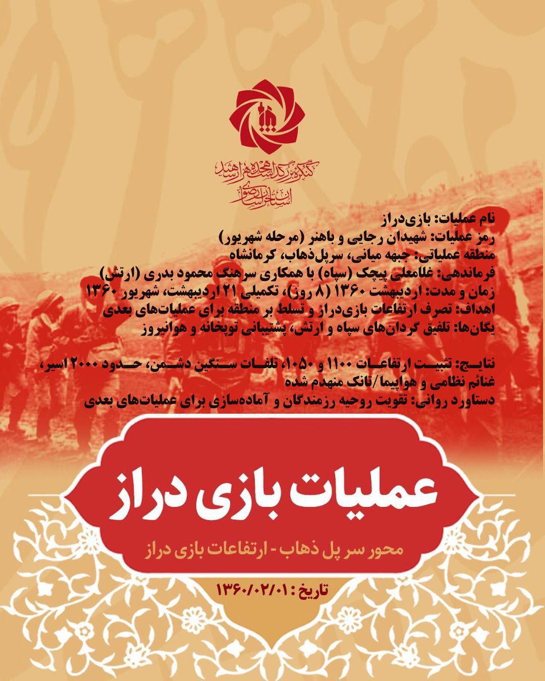 4- اهداف كلي عمليات: تصرف سلسله ارتفاعات بازي‏دراز و گرفتن امتياز تسلط و ديده‏ باني ارتش عراق روي شهرها و مناطق قصرشيرين، سرپل‏ ذهاب و تسهيل عمليات آتي.